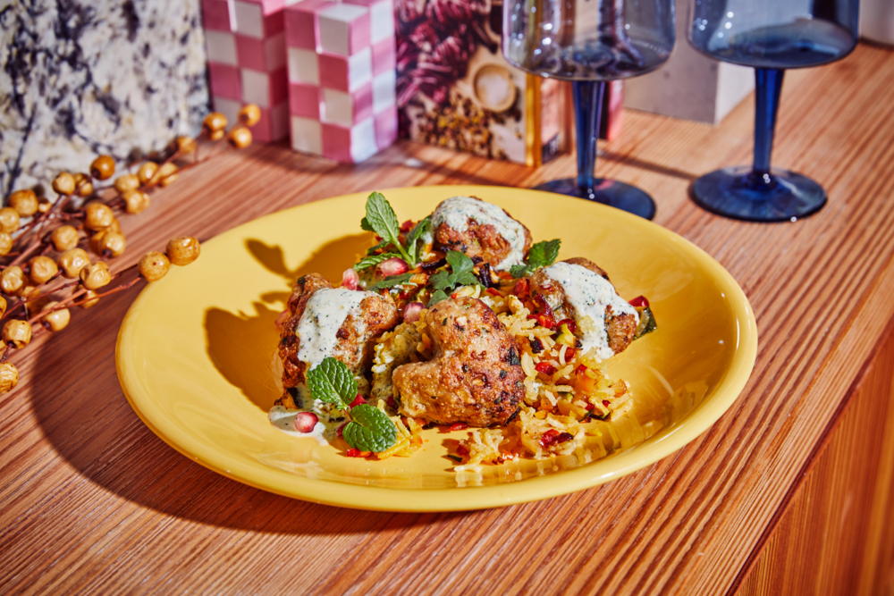 Saffraanrijst met gegrilde groenten en gekruide gehaktballetjes.pdf