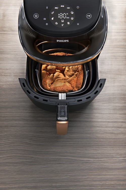 Le Airfryer 3000 de Philips n'est pas seulement un appareil de cuisine puissant, c'est aussi un véritable accroche-regard. Avec son design épuré et minimaliste, sa grande fenêtre de cuisson éclairée et son élégant écran tactile, il s'intègre à tous les intérieurs. Grâce à sa taille compacte, il prend peu de place dans la cuisine, tandis que sa généreuse capacité de 4,2 litres, 6,2 litres ou 7,2 litres convient aussi bien aux repas familiaux qu'aux en-cas rapides et nutritifs.