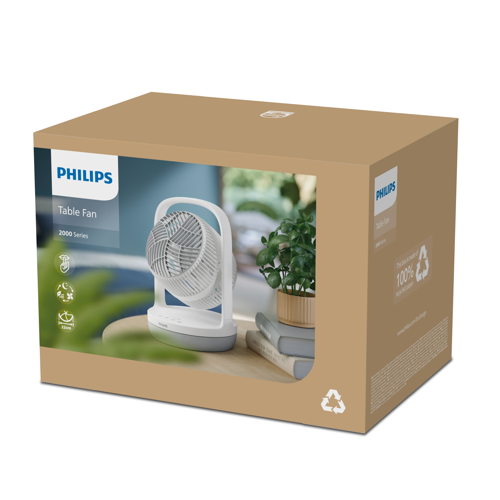 Philips lance le ventilateur de table de la série 2000. Il offre un refroidissement maximal et un bruit minimal, jusqu'à 30 % plus silencieux. Avec 3 vitesses, 2 modes et une minuterie, vous pouvez également personnaliser entièrement le refroidissement. Ce ventilateur est parfait pour l'intérieur et l'extérieur pendant les soirées chaudes. L'aspect élégant de ce ventilateur apporte une touche de design à n'importe quel environnement.